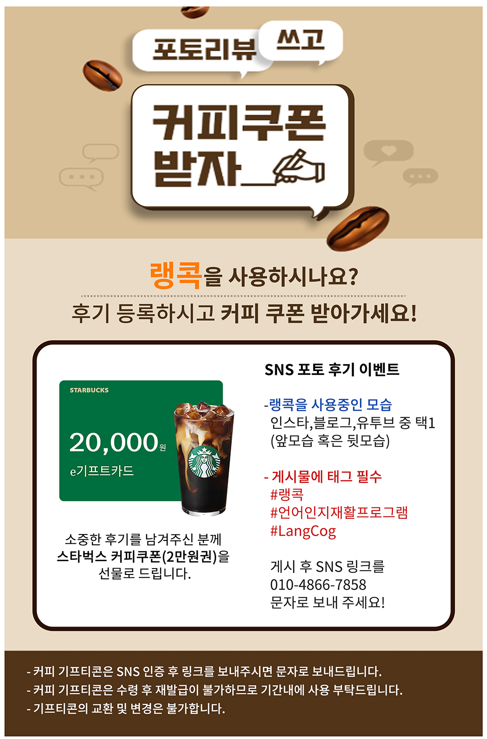 랭콕 포토 후기 쓰고 커피 쿠폰 받자!